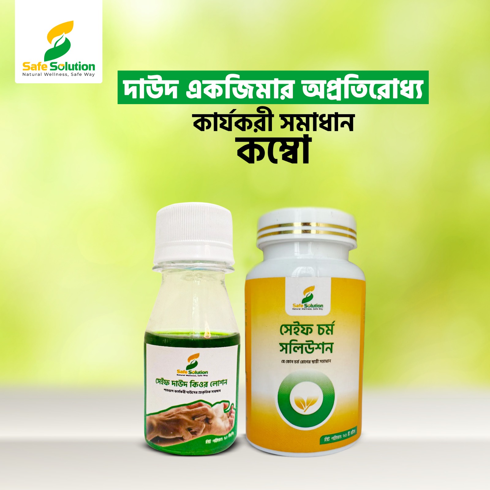 সেইফ চর্ম সলিউশন এবং সেইফ দাউদ কিওর লোশন কম্বো প্যাক – স্থায়ী সমাধানের জন্য সম্পূর্ণ প্রাকৃতিক সমাধান!